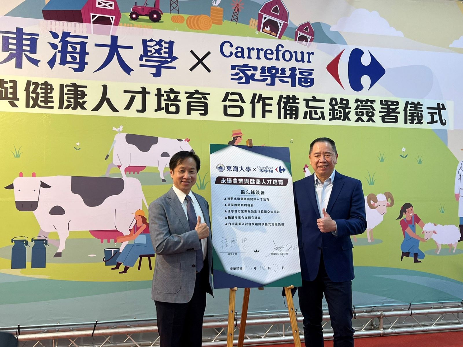 The Memorandum of Cooperation on Cultivating Sustainable Agriculture and Health Talents signed by Tunghai University and Carrefour includes promotion of sustainable agriculture, cultivation of healthcare talents, promotion of animal welfare, periodical bilateral technology exchanges, exploration of cooperative research projects, and co-organization of industrial seminars and forums. In response to the future industrial trend, the two parties will also invest in the cultivation of animal welfare management and audit talents. The integration of Tunghai’s professional education in animal science and Carrefour’s entrepreneur management expertise will significant add value to the students of Tunghai University and increase their career competitiveness.