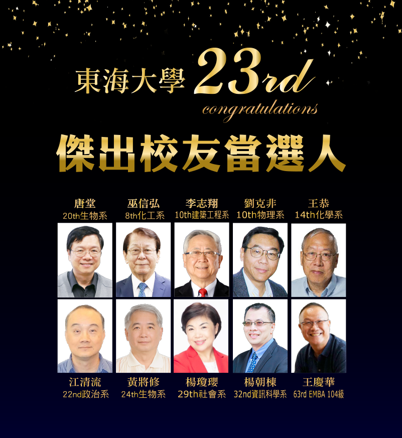 The 2022 Outstanding Alumni Commendation Ceremony will be held on November 2, 2022 at Luce Chapel as part of the university anniversary celebration. We look forward to meeting more Tunghai alumni from all over the world.