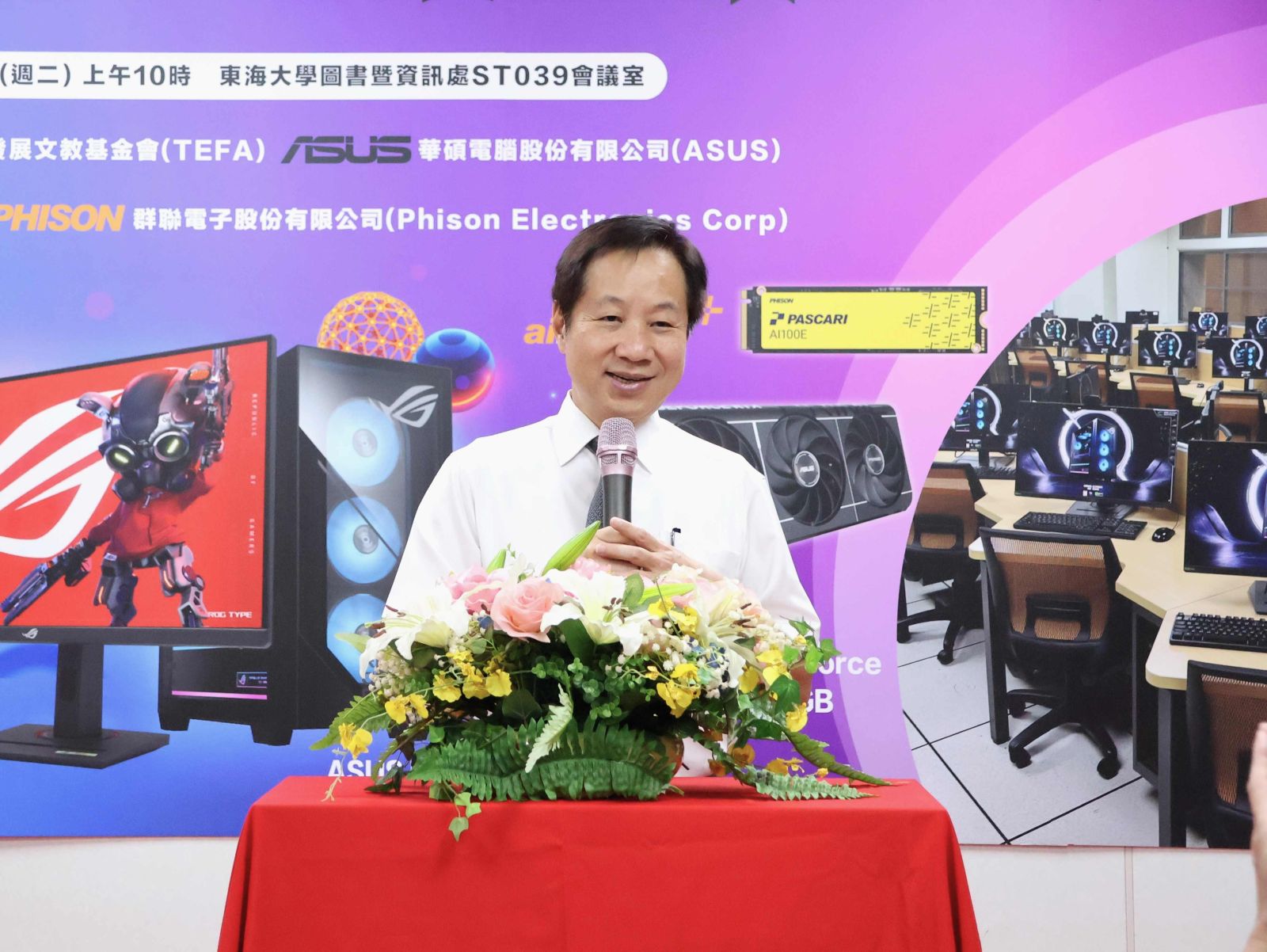 Director of Library and Information Services Yang Chao-Tung explained that in the past, training large AI models relied on high-end servers with steep costs, limiting student access to hands-on practice. The new AI PC Classroom at Tunghai, powered by the ASUS G700TF and integrated with Phison’s aiDAPTIV+ AI accelerator card, effectively distributes computing loads and overcomes memory bottlenecks, enabling students to directly conduct model training, inference, and fine-tuning. The “Yu-Chai AI PC Classroom,” located in the Smart Technology Building (ST023), is equipped with local AI tools such as AnythingLLM and Stable Diffusion, and will be fully open to all Tunghai faculty and students.
