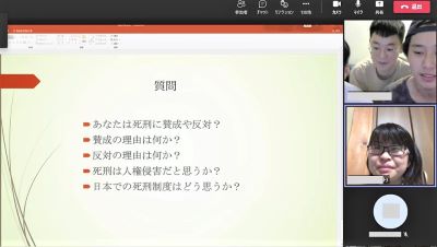 這學期的「日語討論與表達(二)」課程,為進行辯論型的討論課程,將全班同學分成12組,各組自行決定主題並進行準備。同學們探討的主題有「動物實驗的必要性」、「死刑制度的存廢」、「推活」、「臺灣、日本、香港的校規」等。