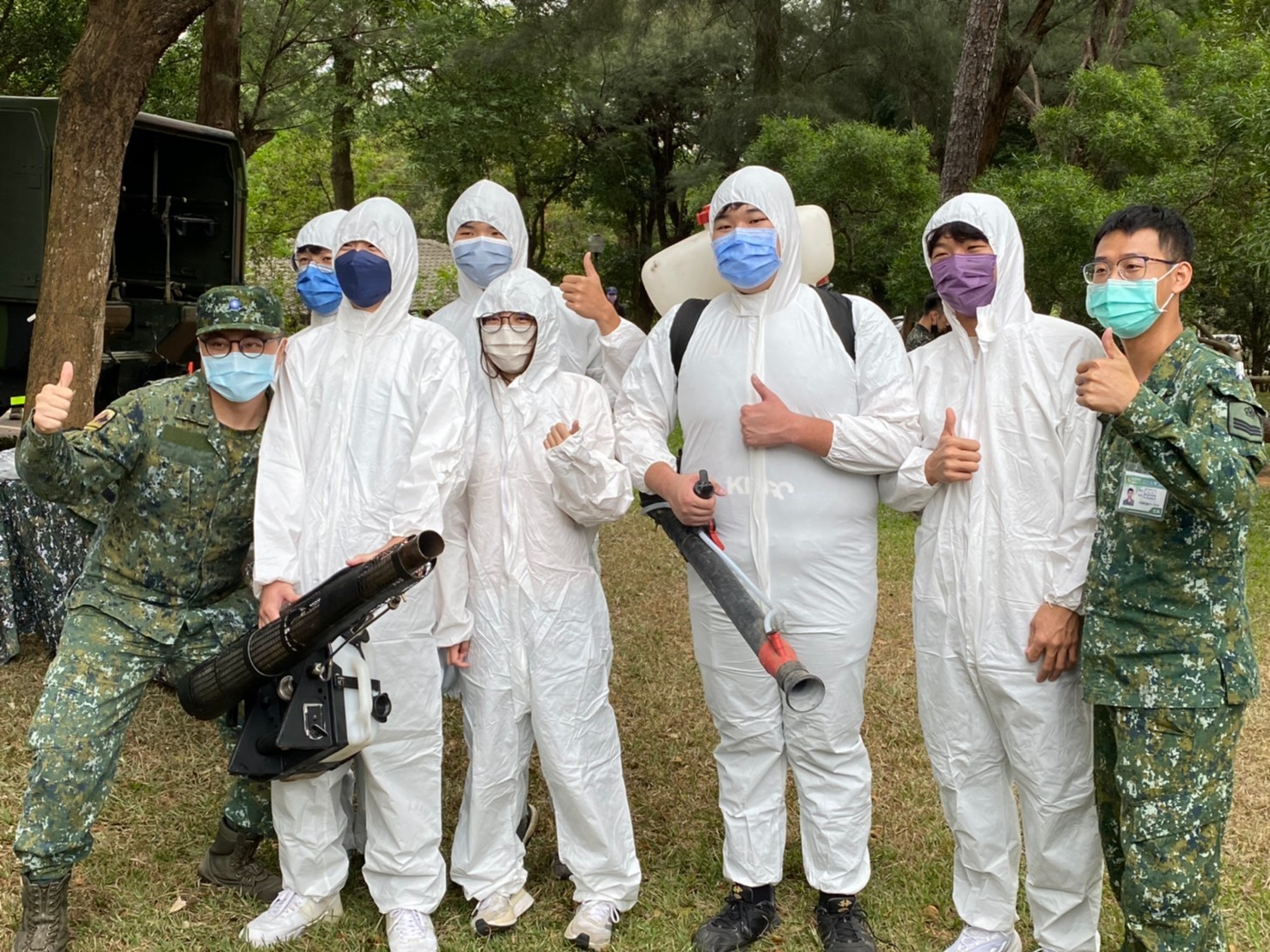 學生換上密不透風防護衣,體驗化學兵平日協助清消勤務的辛苦。