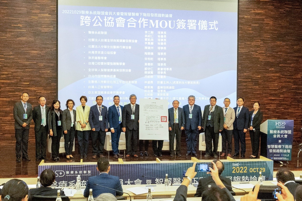 本次大會聯合包含HSC醫療系統聯盟、亞太萊茵精準健康照護學會、台灣口腔雷射暨整體醫學會、台灣全球商貿運籌發展協會、全球華人健康產業發展協會、中華生技醫藥行業協會、台灣昱苗盒公益協會、生醫植入物數位化加工平台技術聯盟、中華國際藥王孫思邈醫學會、互動技術平台產業新興應用聯盟及台灣人工智慧學校等團體,齊聚東海大學共同簽署「跨公協會合作MOU」,並由經濟部生醫推動小組作為見證人,共同打造台灣之健康生醫永續聯盟。