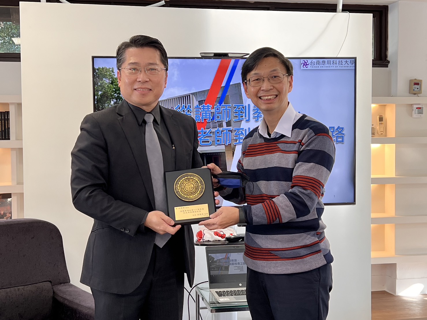食科系主任梁志弘(右)頒贈感謝獎給校友翁家瑞