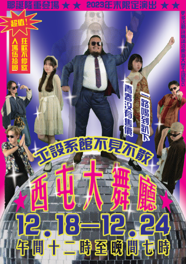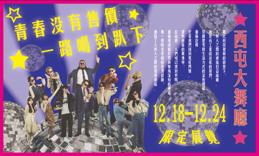 東海工設系表示,本展覽《西屯大舞廳》為互動式展覽,透過情境體驗、市集、飲食,引領大家回到台灣八、九○年代,體驗復古台式風情與娛樂文化。在現代科技發展的背景下,人與人之間的連結日益疏離,而我們反覆思考,並對生活方式做重新詮釋,於是我們回到霓虹閃爍、律動鼓張的復古舞池中。在這裡,人們可以找到共鳴,重新尋回彼此間真摯而深刻的連結,彷彿一場時光穿越的浪漫冒險,重拾人與人之間的情感連結。