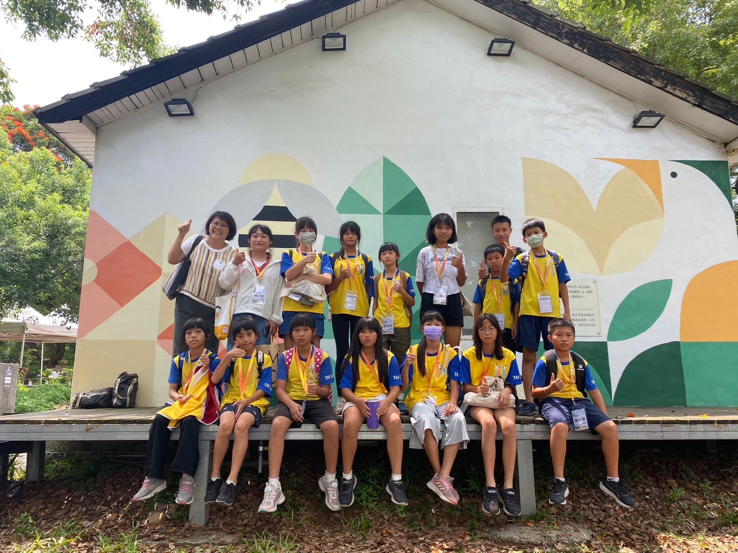 全體師生於圖書館合影