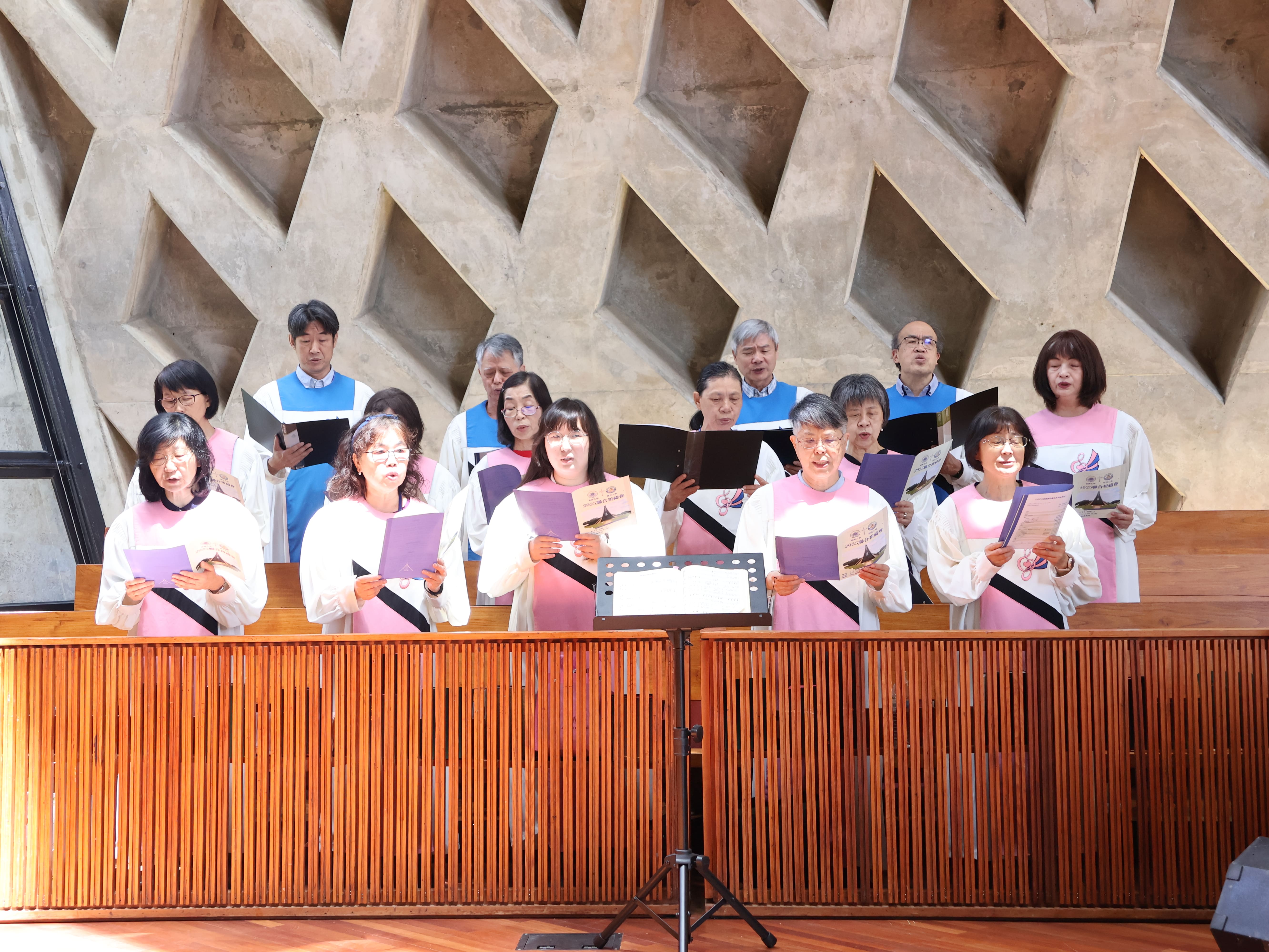 心韻教職員詩班獻唱《倚靠祂就得幫助》,以悠揚的歌聲歌頌上帝。