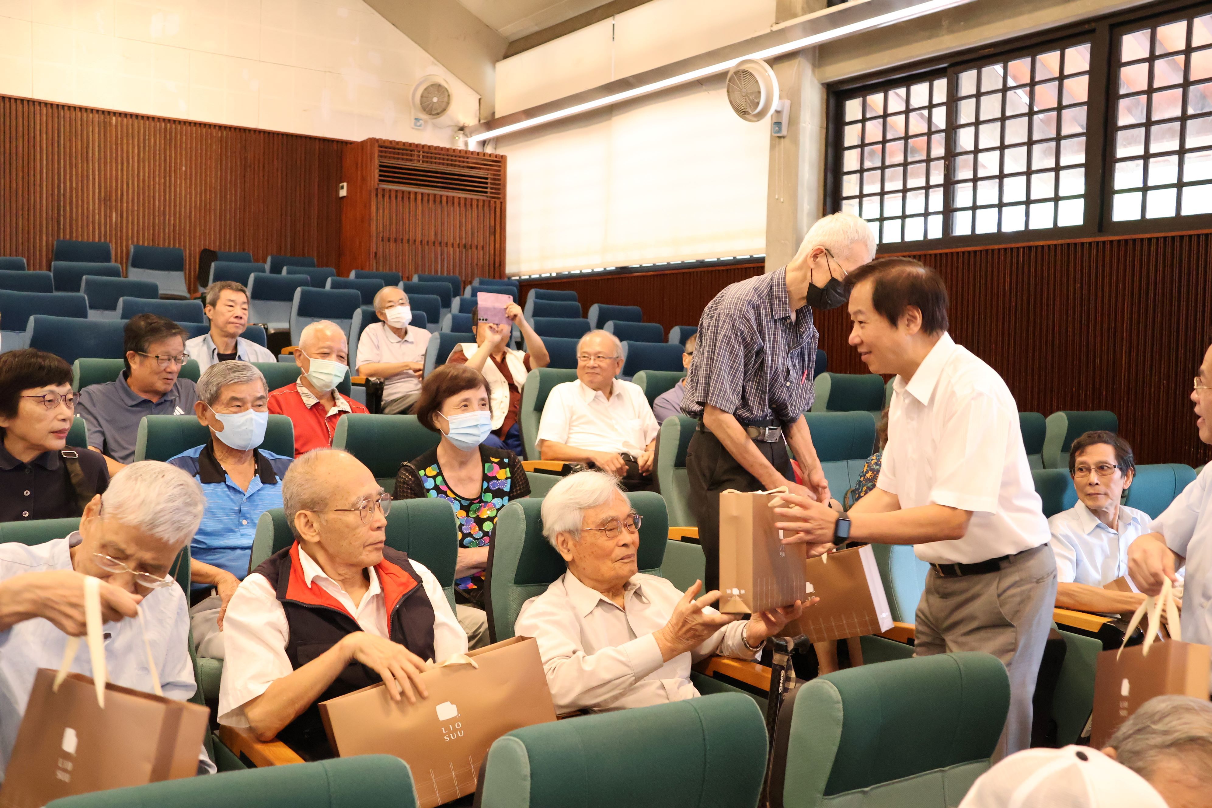 活動尾聲,張校長偕同人事室賴主任向退休老師致意,並致贈教師節禮盒,謝謝老師對東海長年的奉獻與付出,並祝福各位教師教師節快樂。