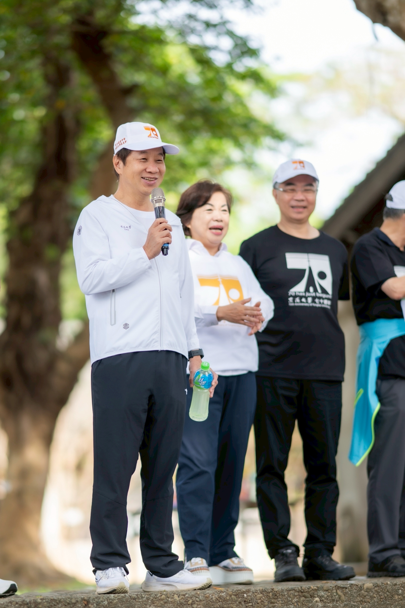 活動總召陳淞屏會長,號召海內外上仟位校友重返母校,共同慶賀七十歲生日路跑活動。
