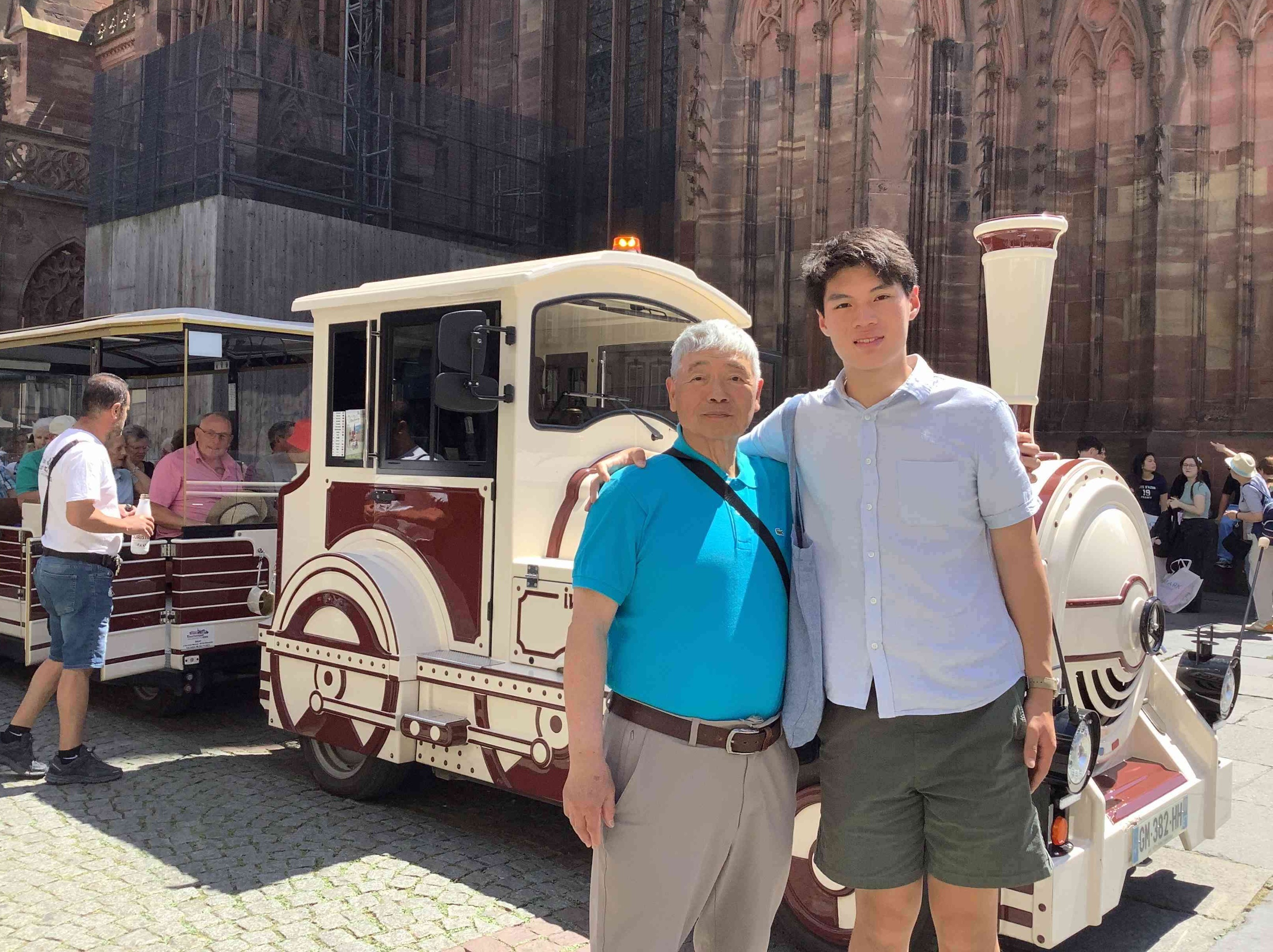 旅美學人陳祥文(左)長年關注台灣高教改革,其孫子Julian Hong現為哈佛大學法律系大一新生,延續家族對教育的熱忱。