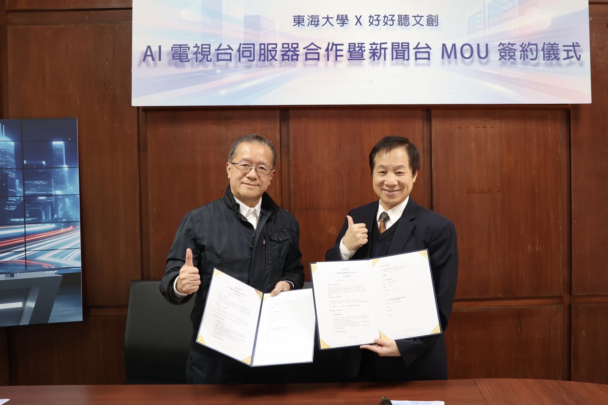 甫建置高階伺服器算力中心的東海大學,(13)日於第一會議室與好好聽文創傳媒公司簽署「AI電視台伺服器合作暨新聞台MOU」,宣布聯手推出全新「AI新聞台」,將高階算力投入AI新聞產製,盼以科技賦能學術研究與學習。好好聽文創董事長潘祖蔭表示,此平台歷經近一年系統開發與測試才完成,打造可自主運作的AI新聞與影音平台。他強調,影音內容生成對於算力需求相當高,正是看準東海的算力中心能提供穩定且高效的運算效能,提升影音產製的「品質」與「產量」,未來文字、聲音與影像皆可在同一平台轉換生成,為AI教育與應用開創嶄新可能。