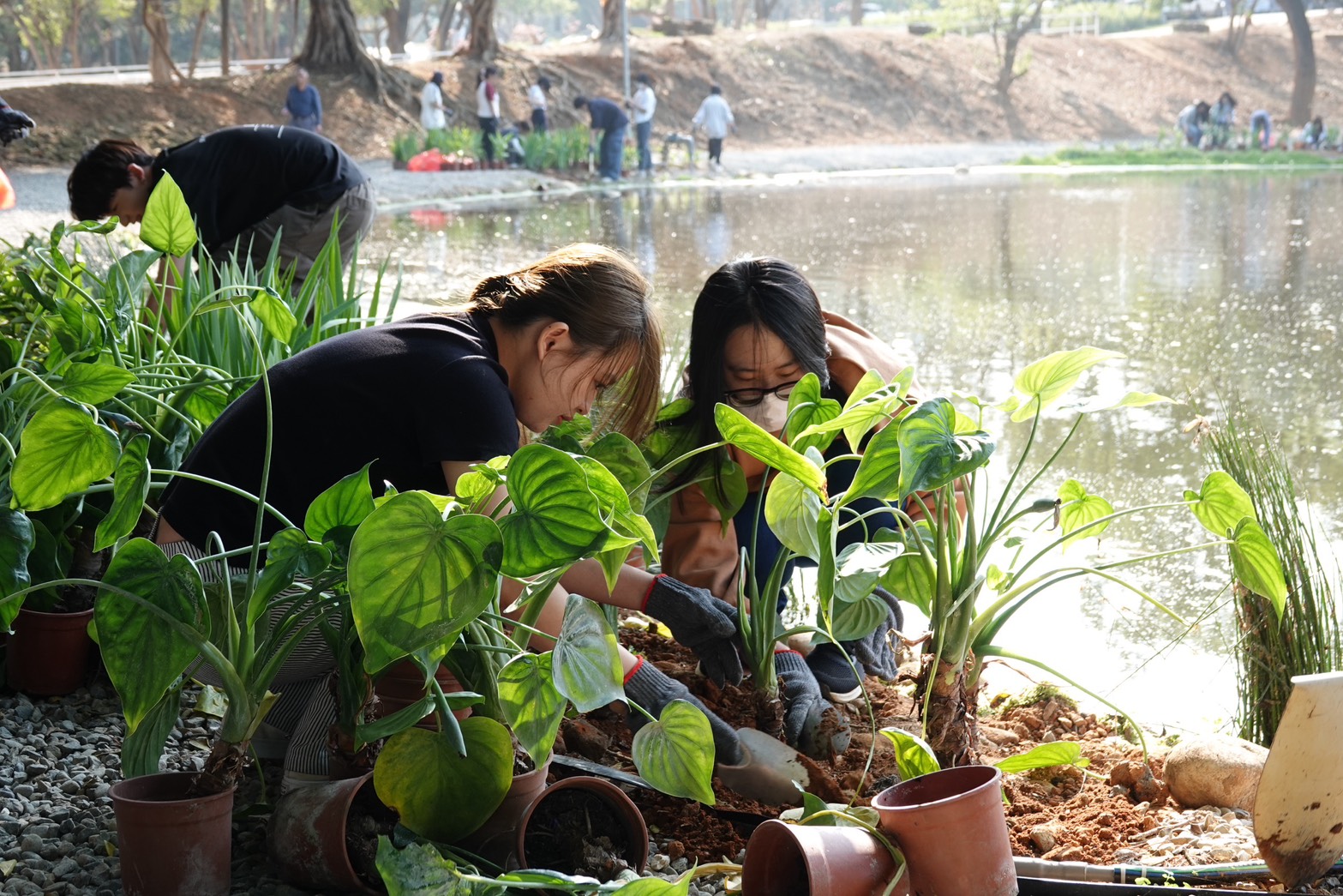 植樹活動中,校內師生皆到場參與,共同種下野薑花、鳶尾等逾700株親水植物,透過多樣植栽營造層次豐富的水岸生態景觀。