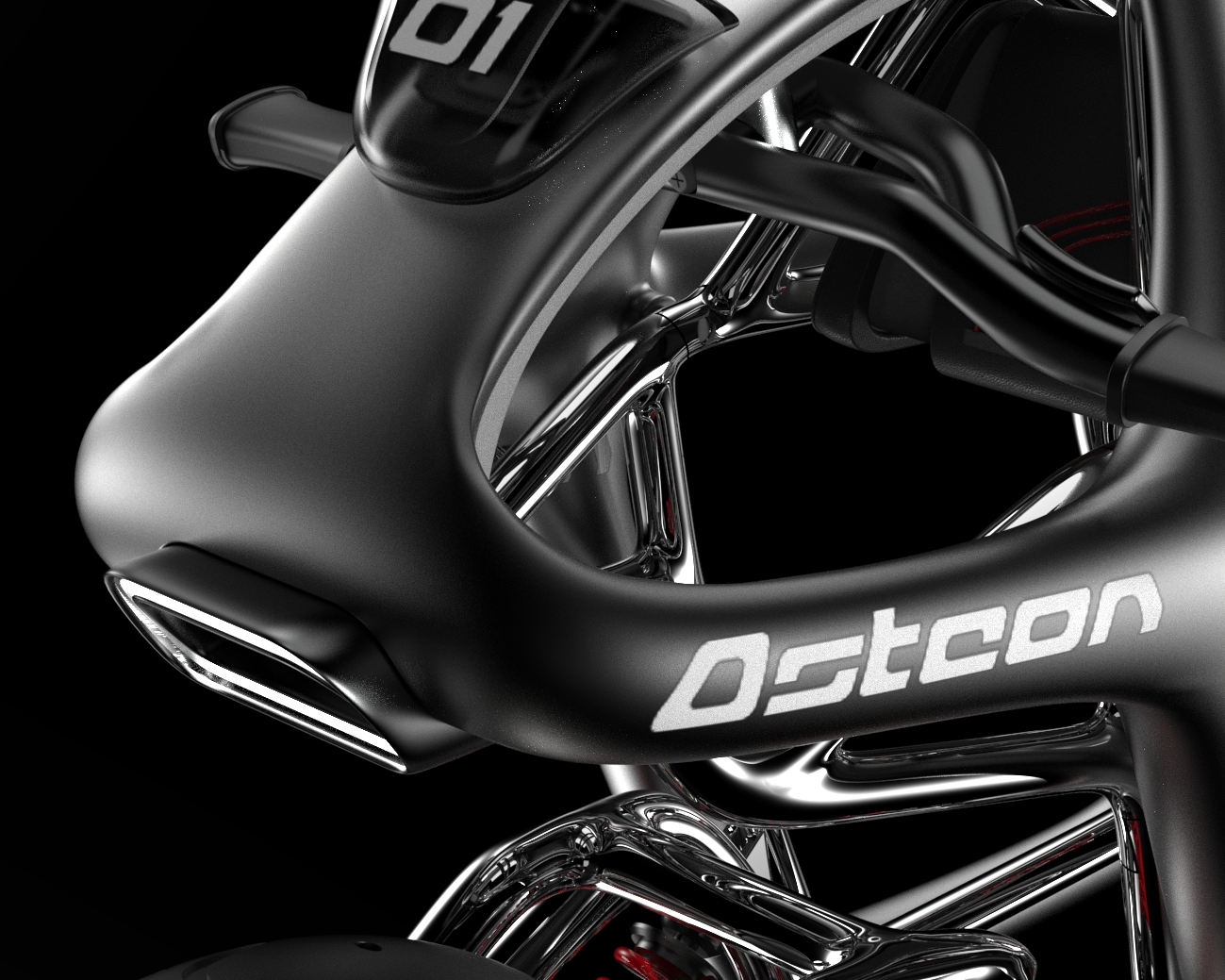 另外,交通工具類則有林彥廷與陳冠宇雙人組以有機骨架為靈感設計的〈OSTEON〉,透過有機型態的骨架結構,設計出美學及功能融合的新型態機車,其獨特的產品視覺語言榮獲金點新秀設計獎入圍肯定。