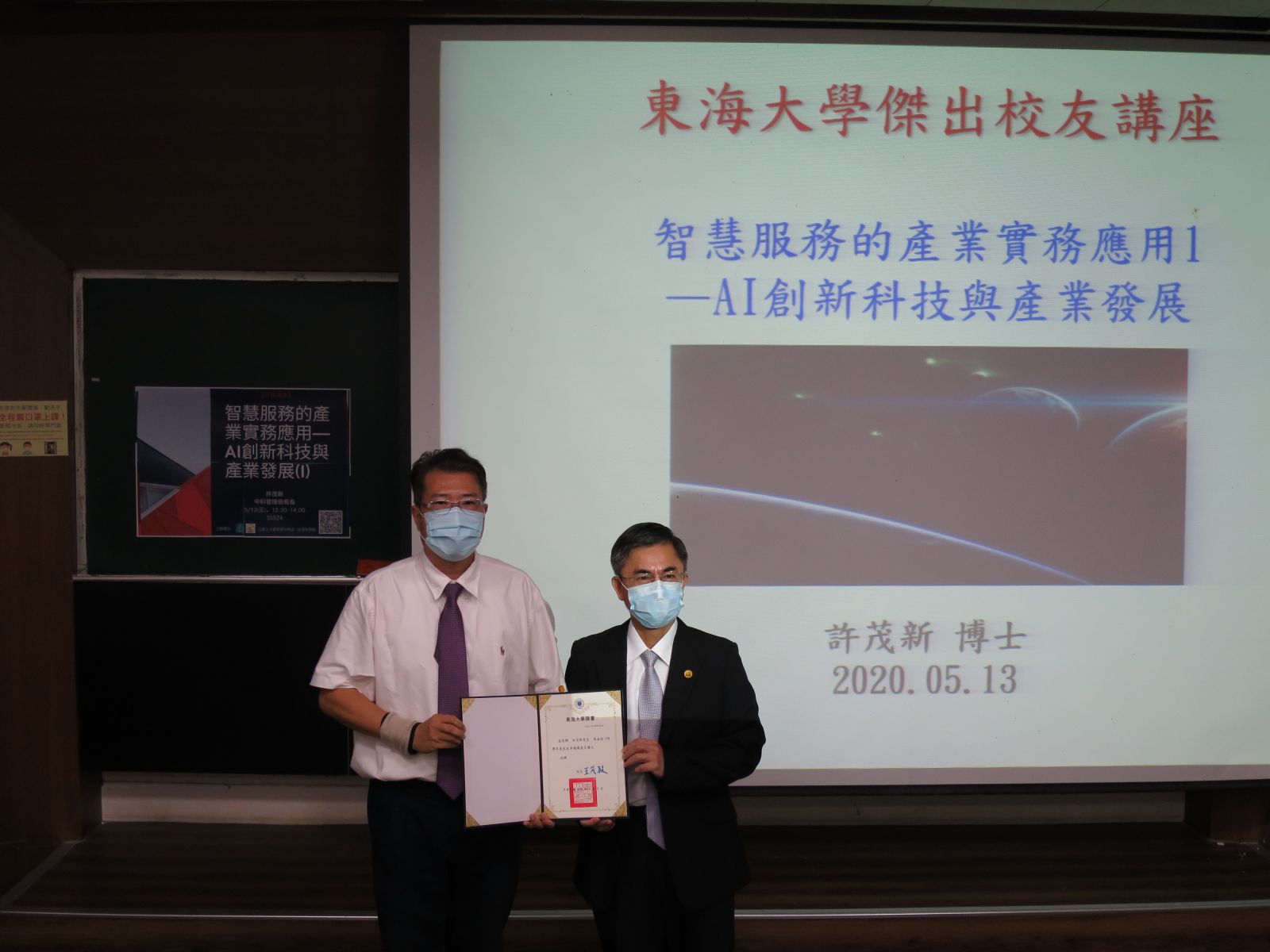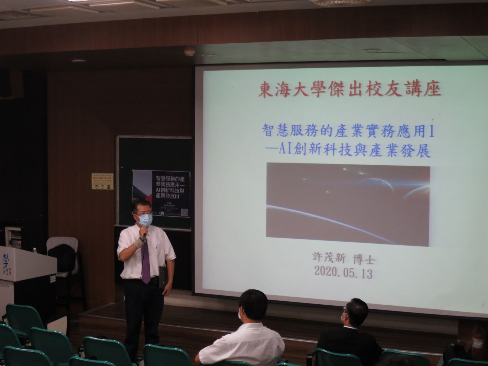 108學年度第2學期校友卓越講座,本系推薦中科管理局許茂新局長為講座人選,分享有關Al的創新科技與產業發展趨勢,總共有三個場次,分別為109年5月13日、5月20日、6月3日,三場次共計 150人。許茂新局長畢業於本校行政管理暨政策學系碩士班,為其任公職後之繼續進修。在系列演講中,許局長先就個人學習及職涯發展歷程與在場師生分享,嗣針對園區發展、園區產業類型、人工智慧及光子世代下的未來產業等面向,提出架構性、實務性、前瞻性的分析說明,使在場師生對於人工智慧、創新科技與園區產業發展,有充分的瞭解。