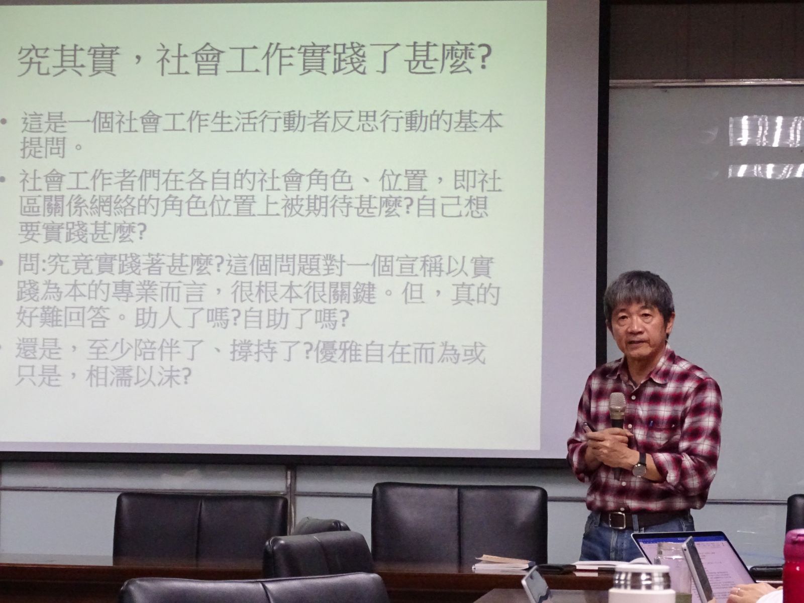 本次講學的主題是陶蕃瀛老師整理三十餘年的社會工作教學與實踐經驗,以社會工作的本體論、知識論與方法論的三個軸面作為呈現。這三個軸面分別對應了幾個社會工作的基本提問。